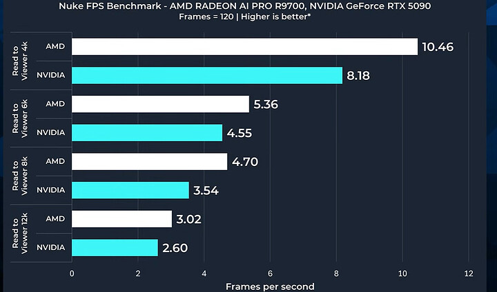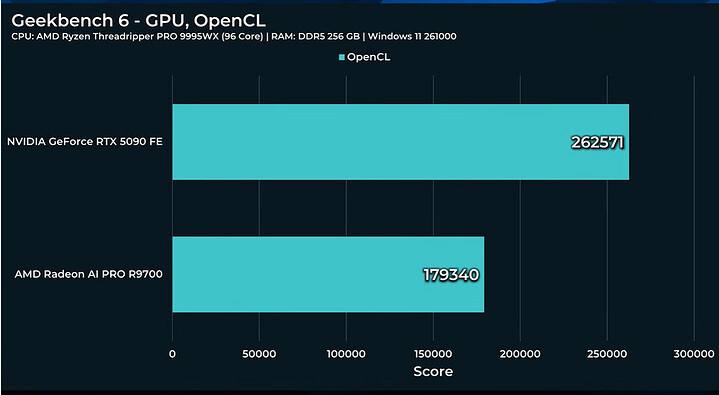 Như thường lệ, các bài kiểm tra hiệu năng tổng hợp cho thấy Nvidia vượt trội hơn hẳn. Đối với AI, cấu hình 2x R9700 có thể khá nhanh trên Windows, với nền tảng Vulkan.