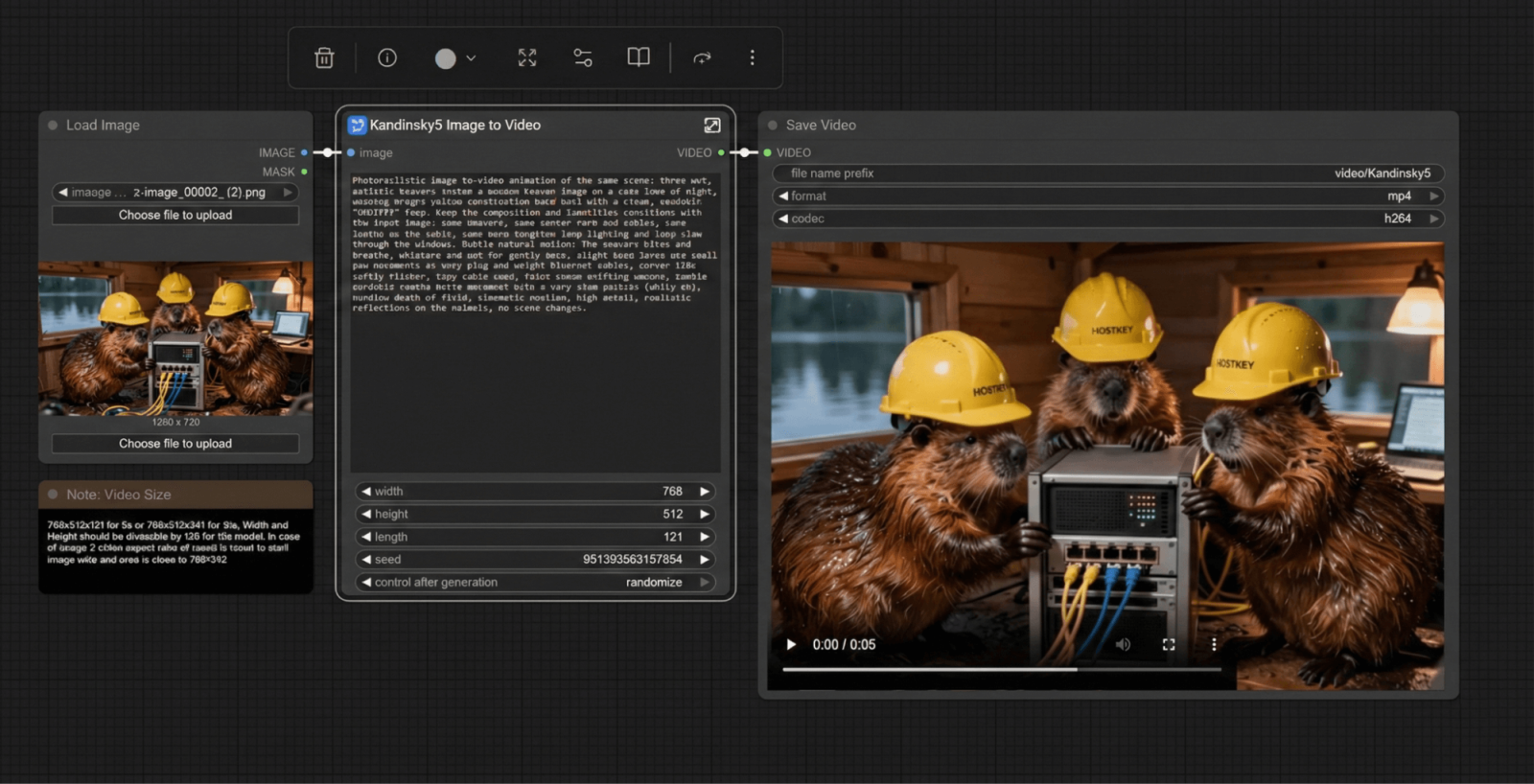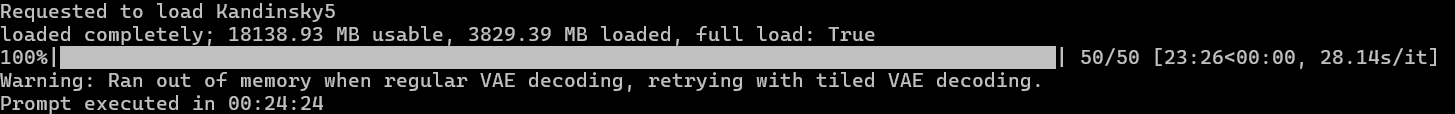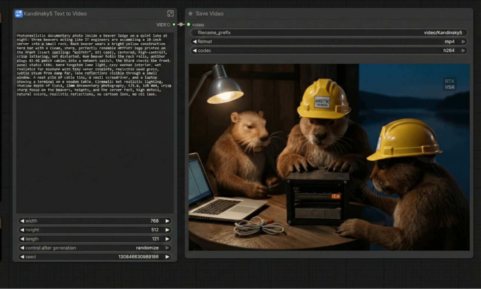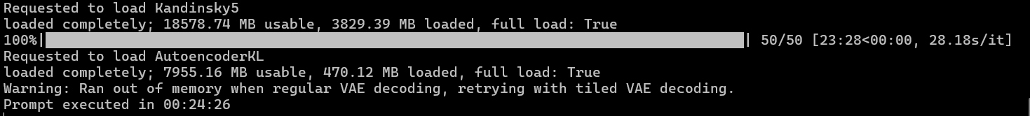Đối với Kandinsky 5 Lite, khi sử dụng chế độ “văn bản trong video” với cùng chủ đề, chế độ này sẽ tạo ra tải trọng tối đa cho card đồ họa, tiêu thụ từ 280 đến 300 watt điện năng.