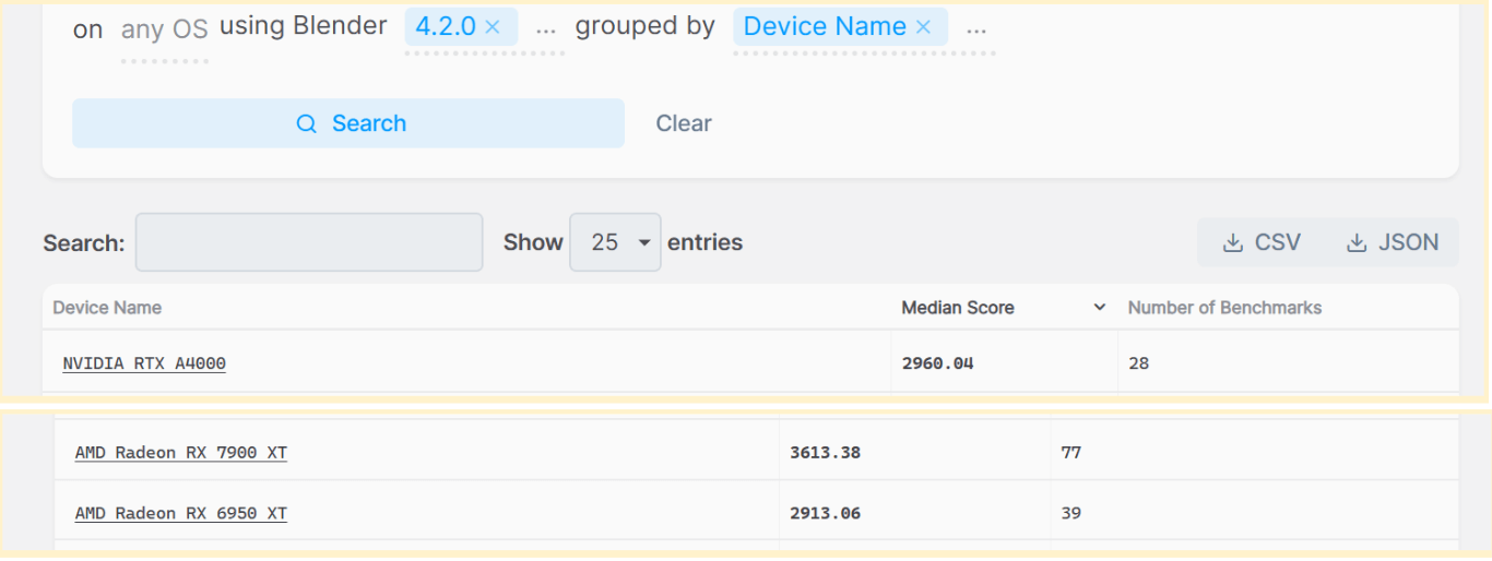 Chúng tôi đã sử dụng liên kết thử nghiệm này https://opendata.blender.org/ để đánh giá. Chỉ có thể chạy thử nghiệm này trên phiên bản LTS của Blender 4.2.