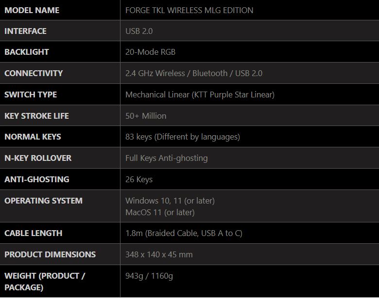 Bàn phim MSI FORGE TKL WIRELESS MLG EDITION