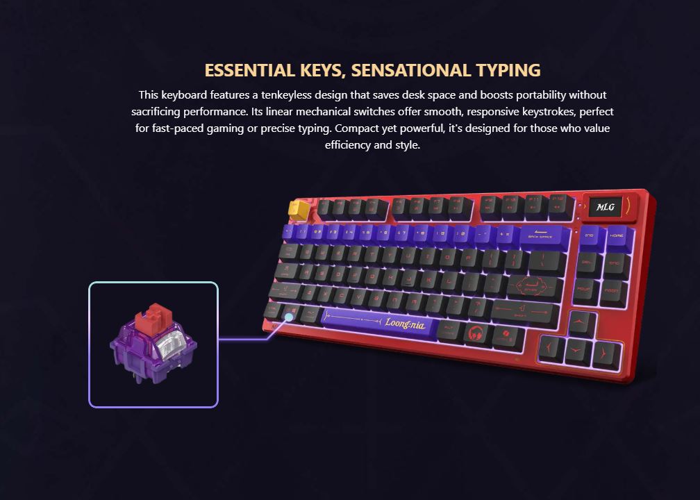 • - CÔNG TẮC TUYẾN TÍNH CƠ HỌC - Công tắc cơ học bền bỉ và chống bụi mang đến cấu hình tuyến tính và cảm giác chính xác cho mỗi lần nhấn phím.