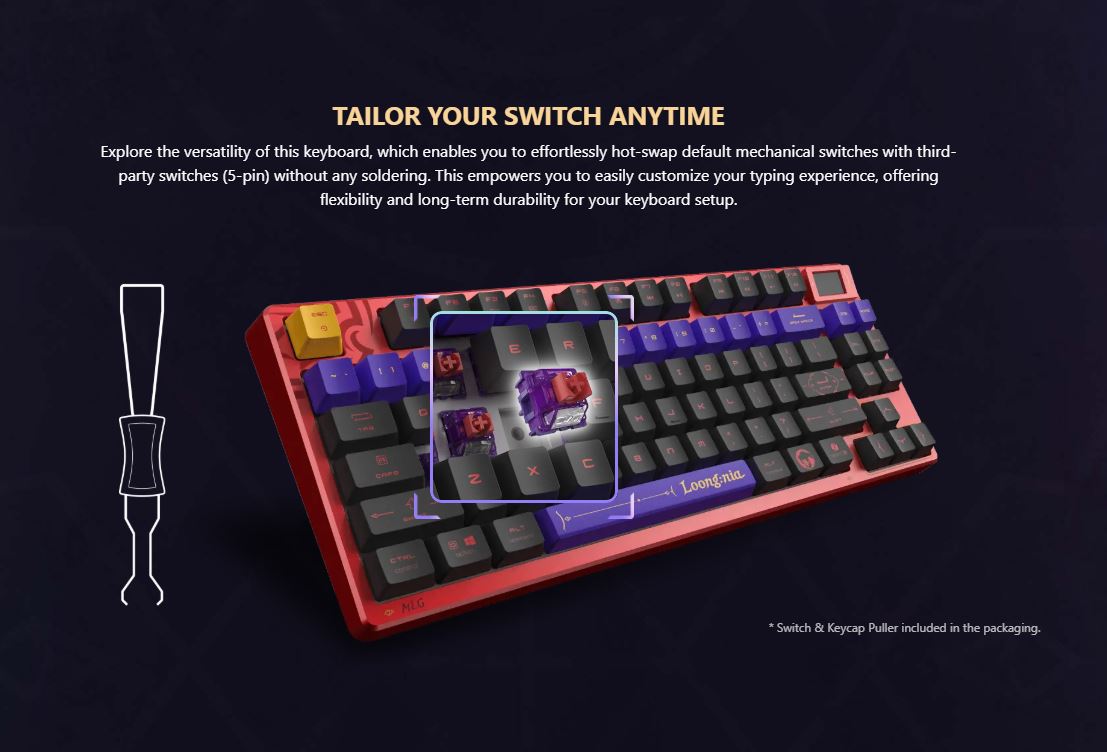 • - THIẾT KẾ CÓ THỂ THAY THẾ NÓNG - Thiết kế bàn phím có thể tùy chỉnh để thay thế các công tắc cơ học mà không cần hàn.