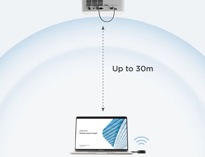 ViewShare có thể trình chiếu nội dung không dây từ khoảng cách lên đến 30 mét, mang đến giải pháp tiết kiệm chi phí khi loại bỏ nhu cầu sử dụng cáp HDMI dài, đặc biệt hữu ích trong các không gian rộng lớn như hội trường, giảng đường và nhiều nơi khác.