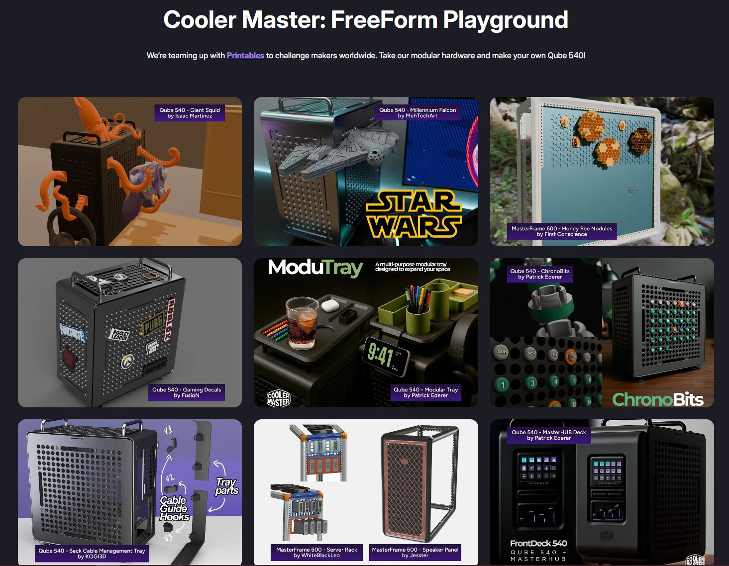 Người dùng máy in 3D có thể tìm thấy vô số ý tưởng tùy chỉnh trên trang chia sẻ file in Printables, từ cả Cooler Master và những người dùng khác. Bên cạnh các phụ kiện tiện dụng như giá đỡ tai nghe, bàn phím và điện thoại thông minh, còn có các tùy chọn trang trí độc đáo khác. Trong khi đó, đế xoay cho phép vỏ máy xoay 360 độ miễn là không có dây cáp nào cản trở.