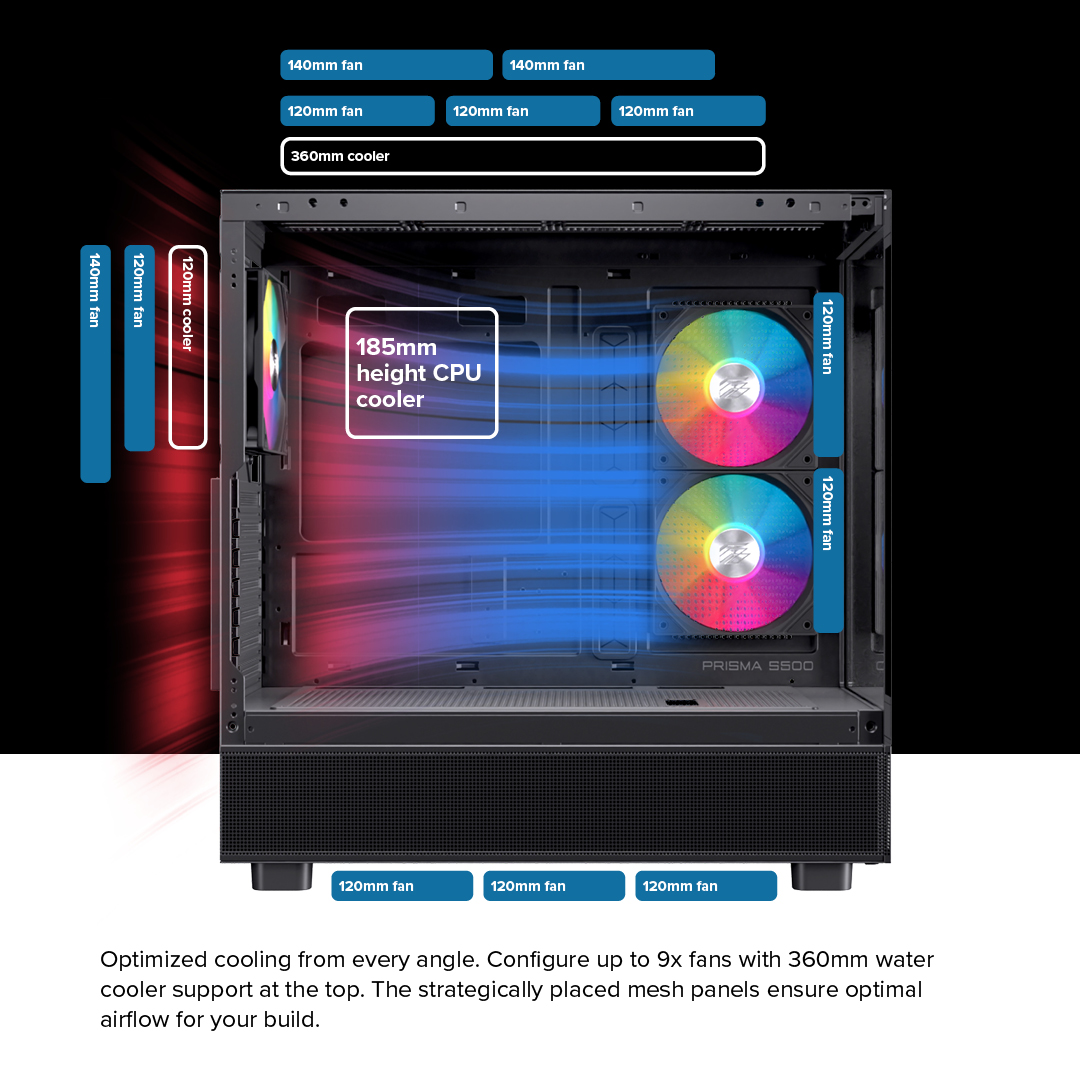 - Chiều cao Tản nhiệt CPU tối đa: 185mm