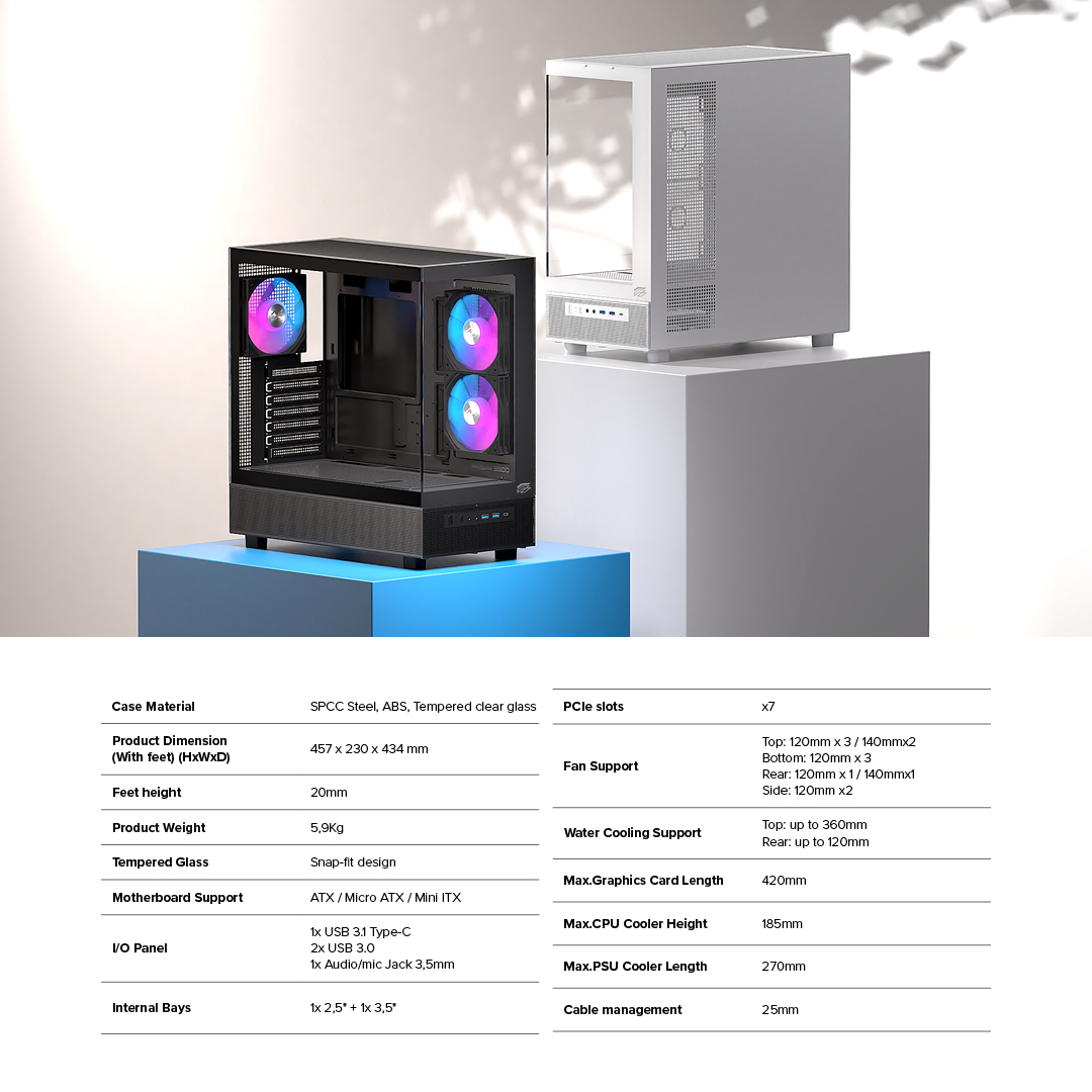- Hỗ trợ Motherboard: ATX / Micro ATX / Mini ITX