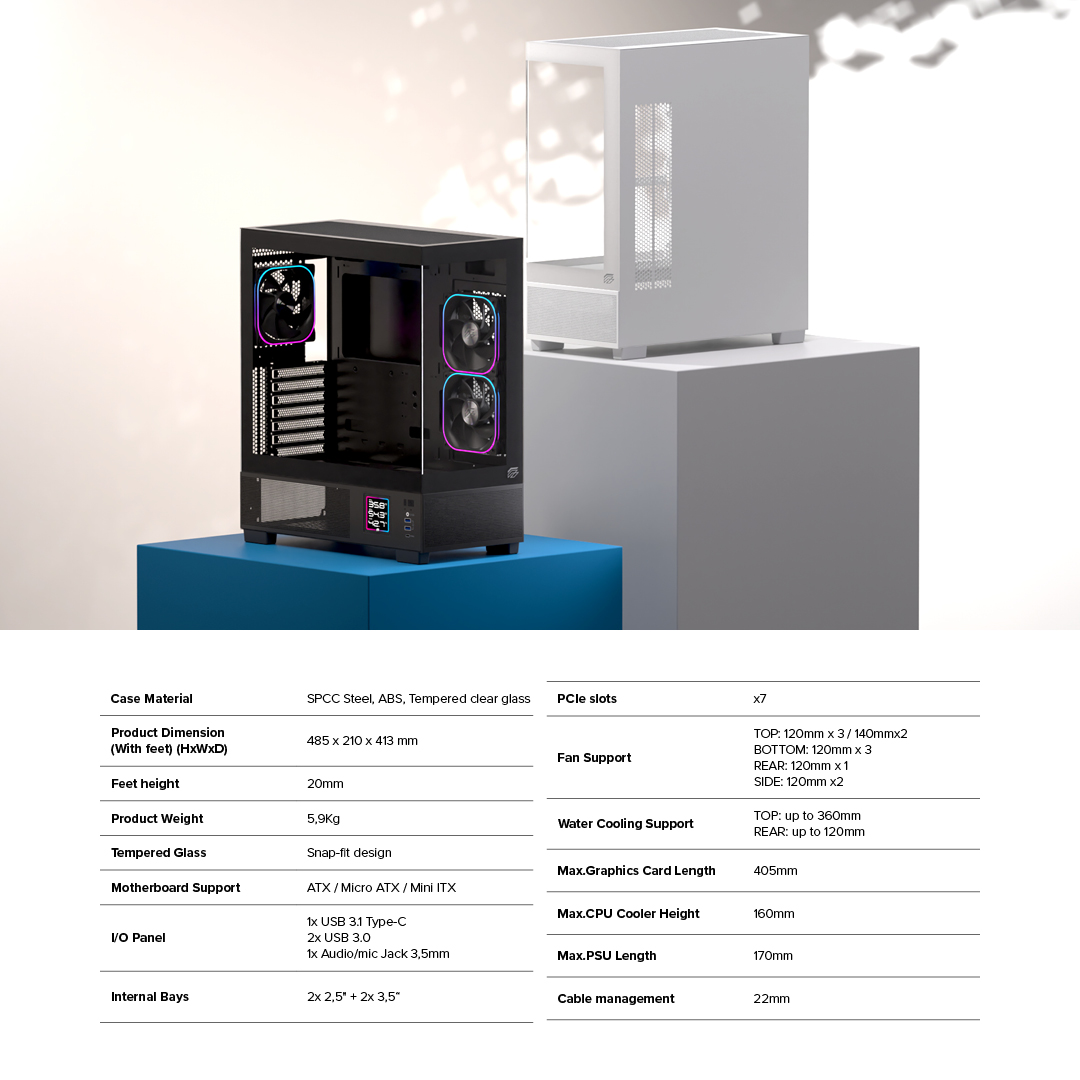 • - Hỗ trợ Motherboard: ATX / Micro ATX / Mini ITX