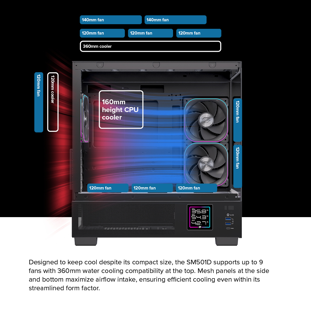 • - Hỗ trợ tản nhiệt nước: 360mm