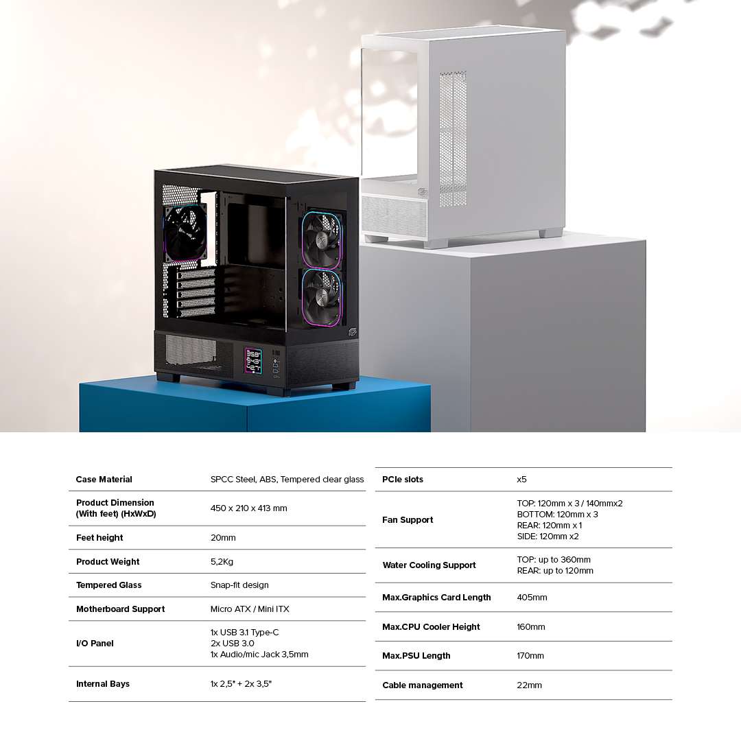 • - Hỗ trợ mainboard: ATX / Mini ITX