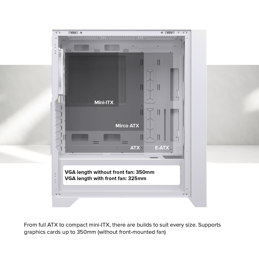 • - Chiều dài Card đồ họa tối đa: 350mm / 325mm