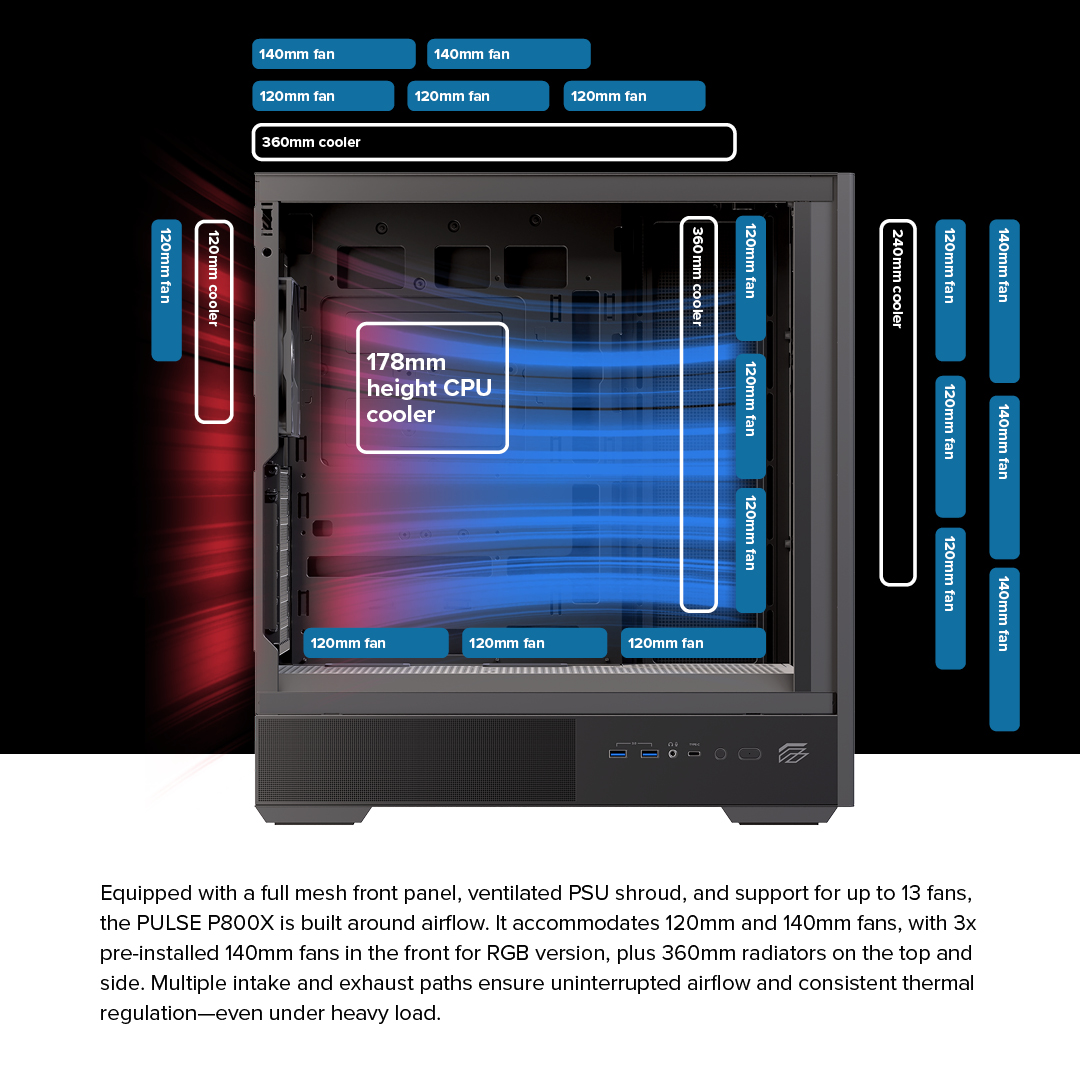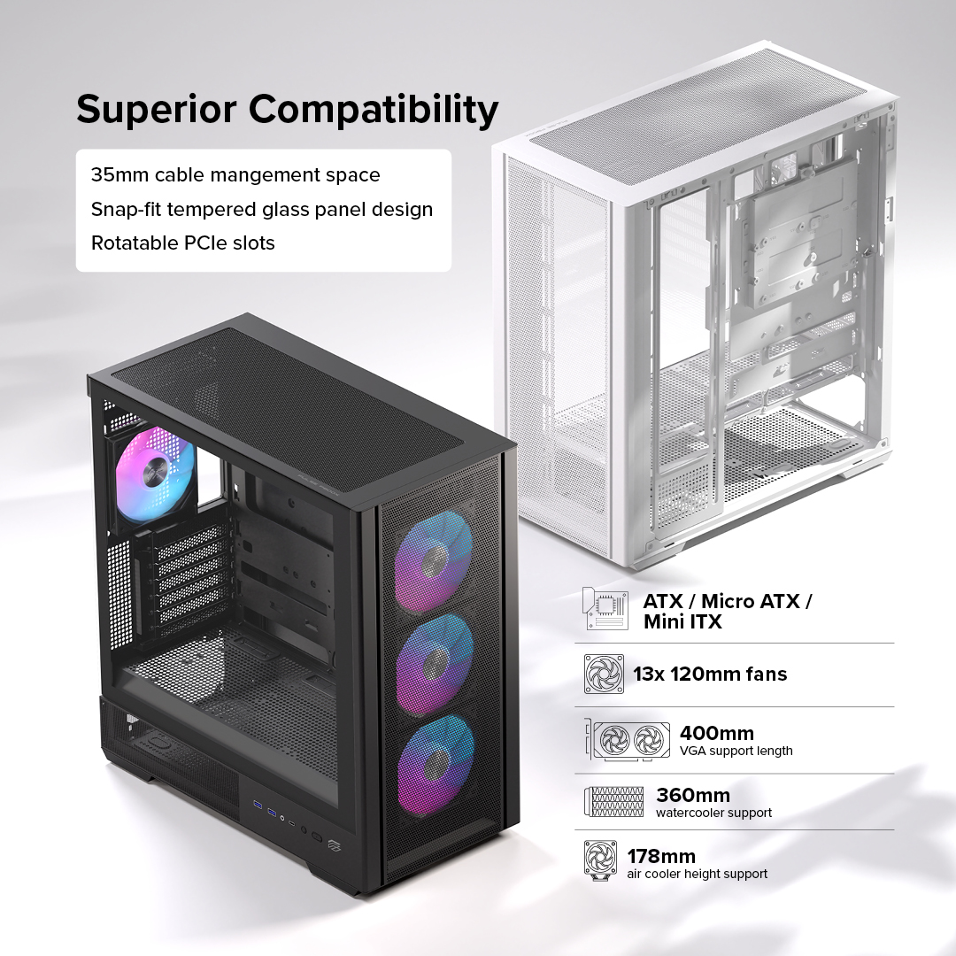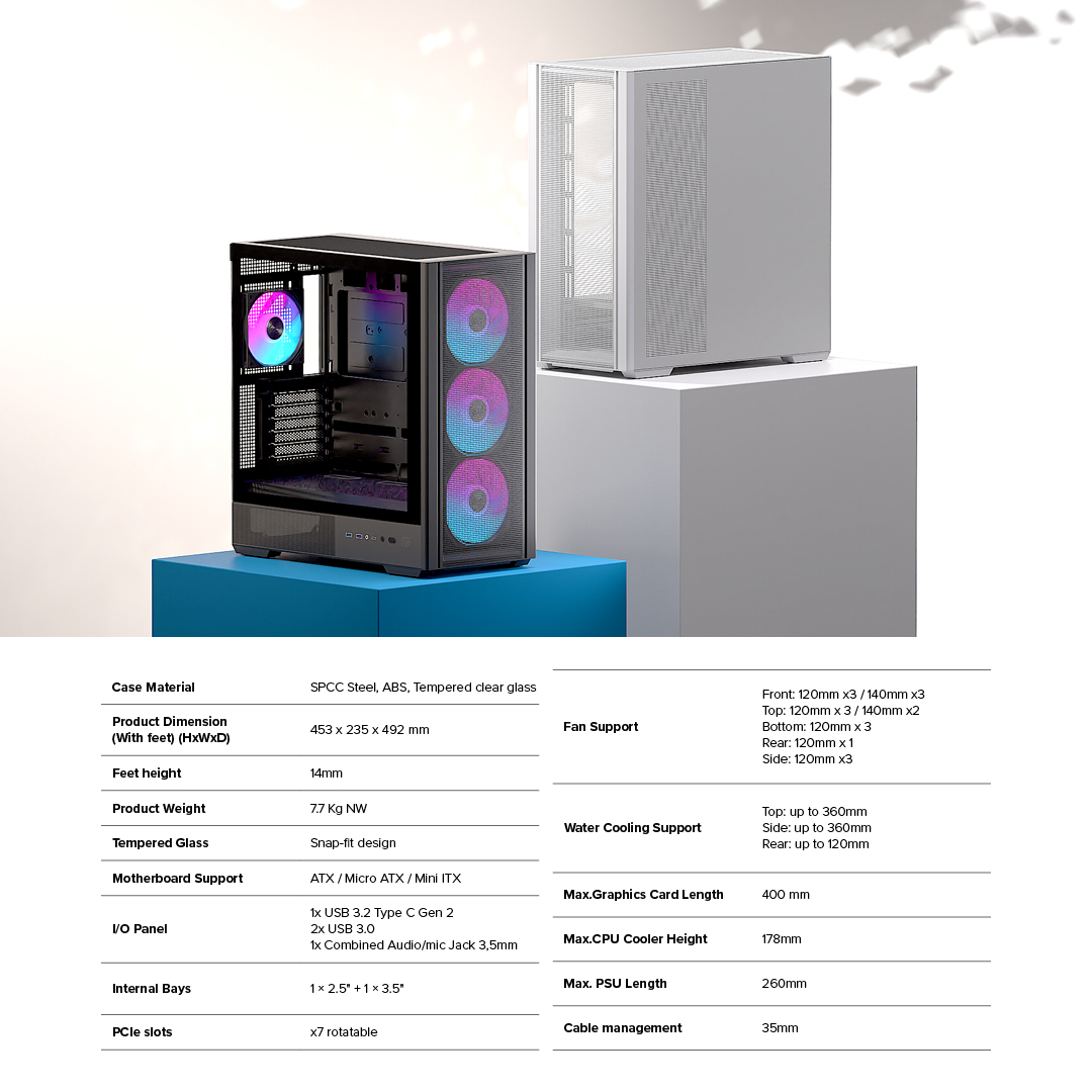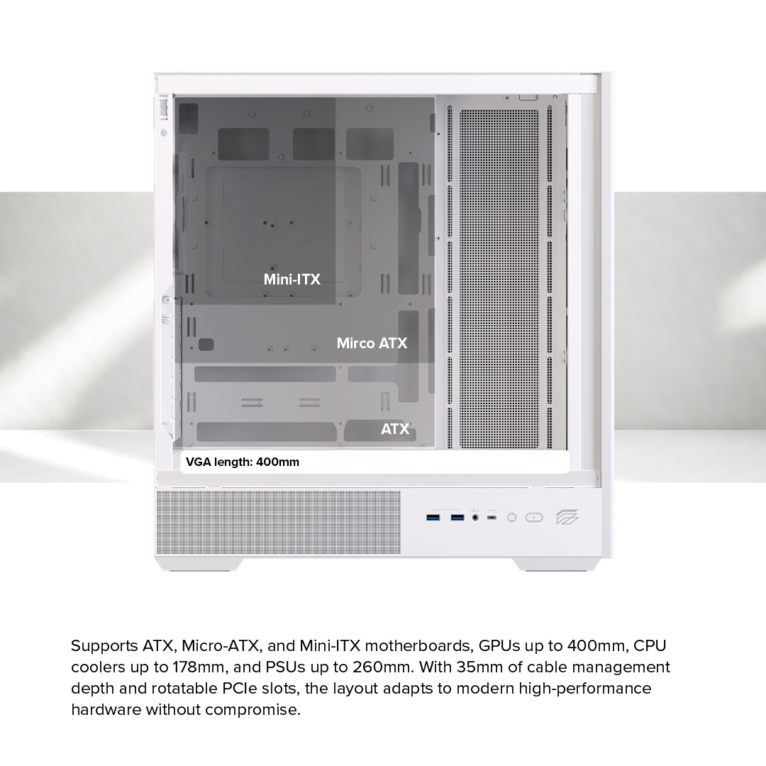 • - Motherboard Support: ATX / Micro ATX / Mini ITX
