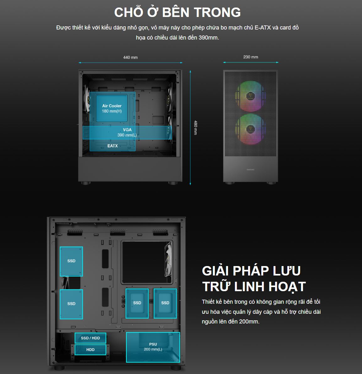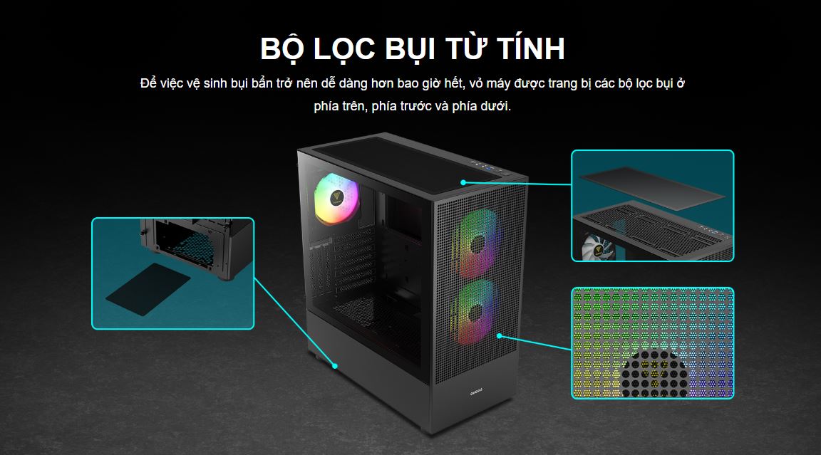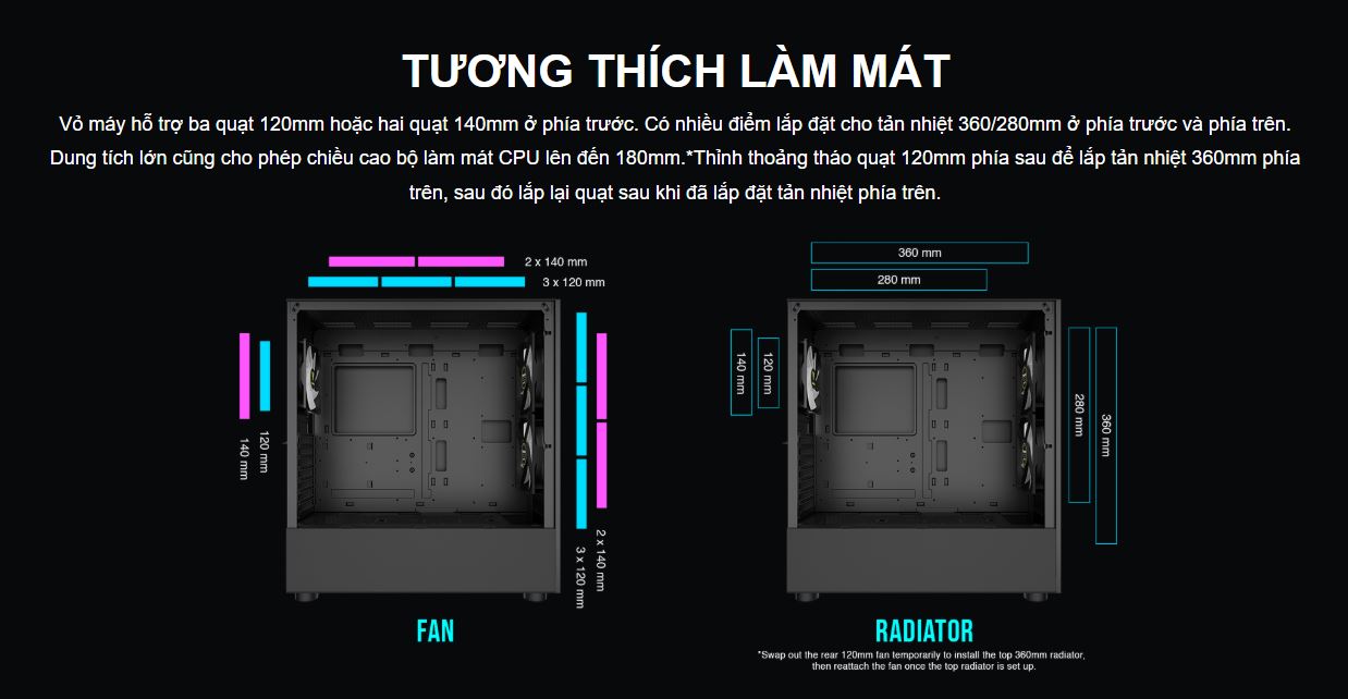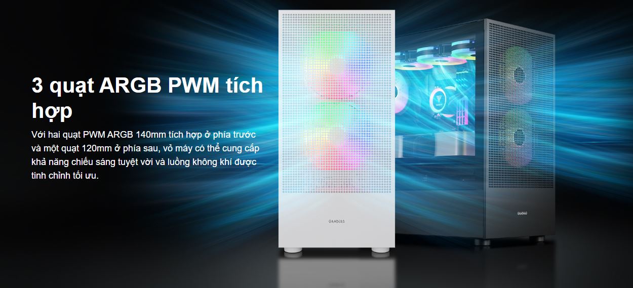 • - Fan đi kèm: 1 x 120mm, 2 x 140mm ARGB PWM