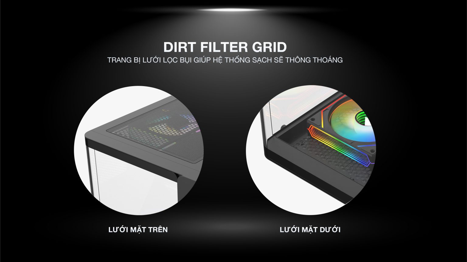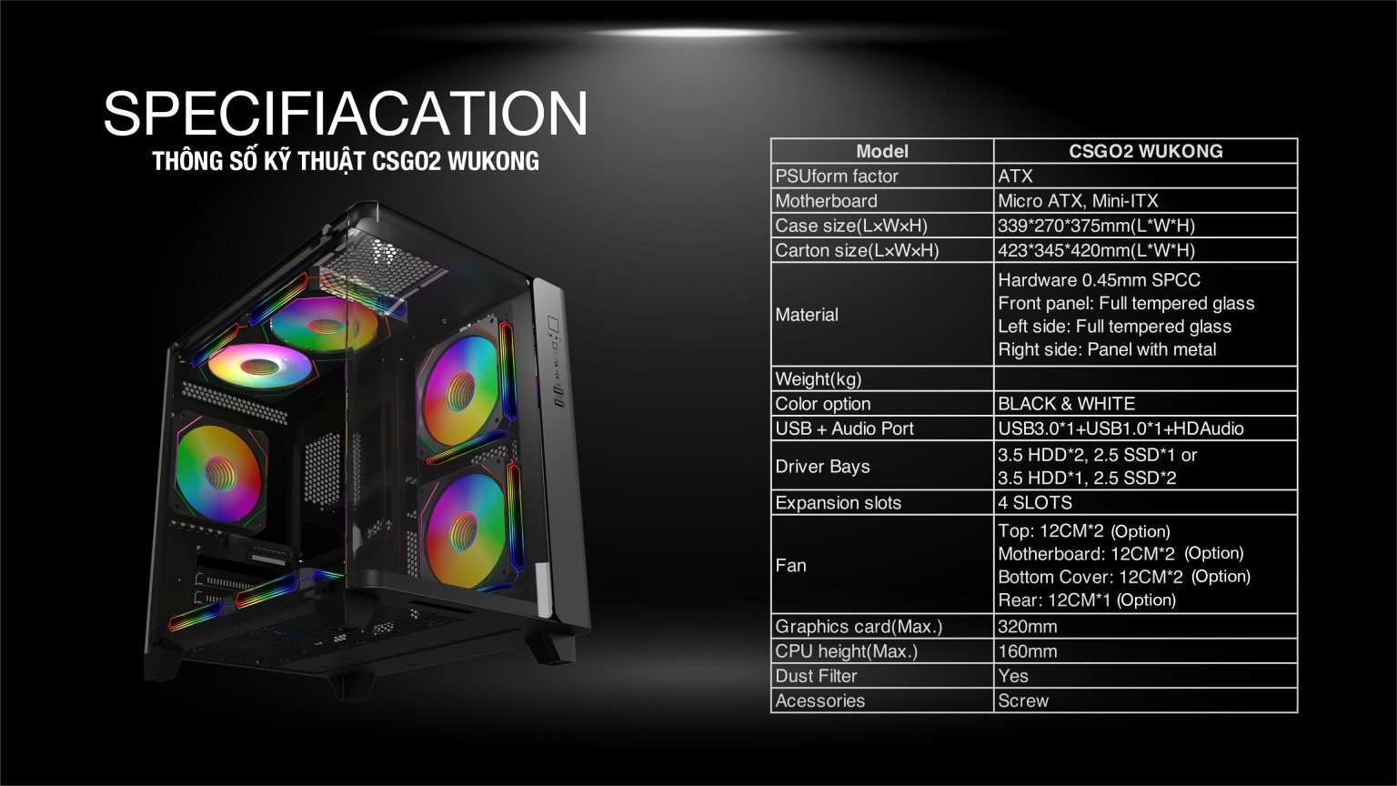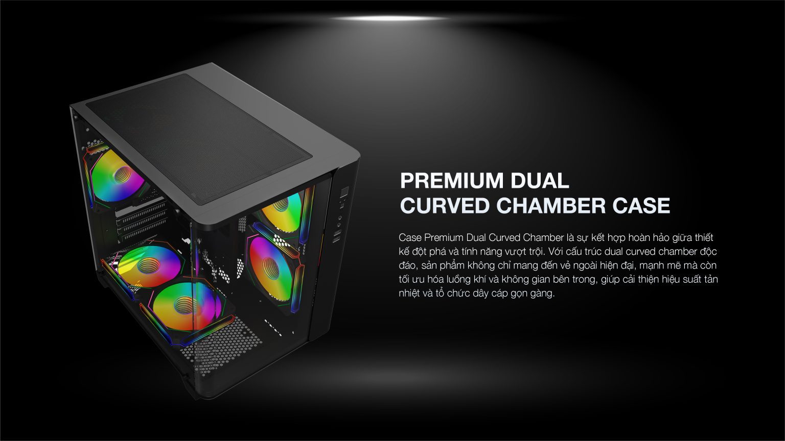 • - Mặt kính cường lực (Tempered Glass): Hiển thị toàn bộ hệ thống linh kiện bên trong với hiệu ứng ánh sáng RGB rực rỡ, giúp tôn lên vẻ đẹp và cá tính của bộ máy.