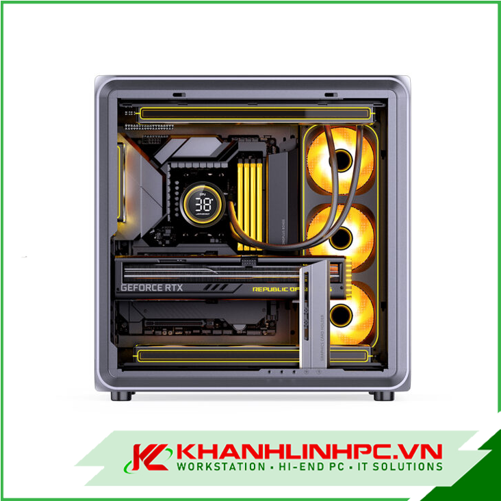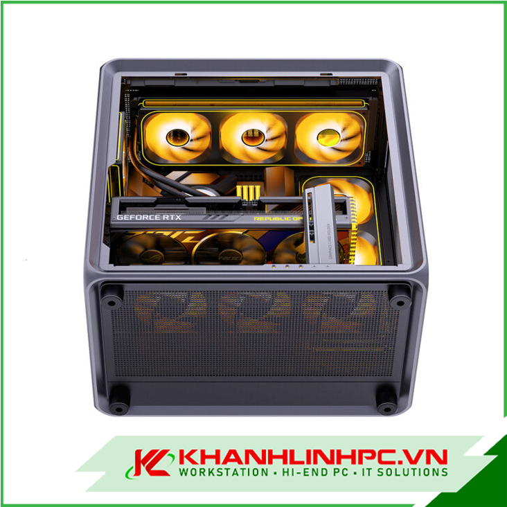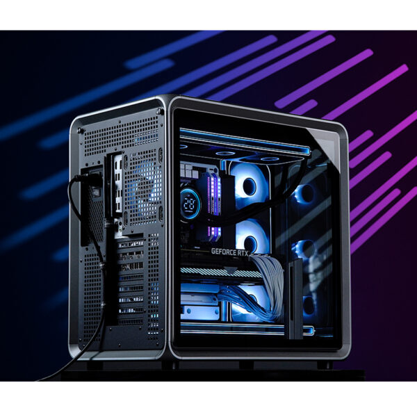 Thiết kế khung cố định quạt làm mát với cấu trúc linh hoạt có thể tháo rời, lật hoặc điều chỉnh vị trí. Nắp trên và mặt trước có thể hoán đổi cho nhau, đồng thời có thể sử dụng nắp kính đi kèm để đạt được chế độ hiển thị phần cứng với ba mặt xuyên thấu.
