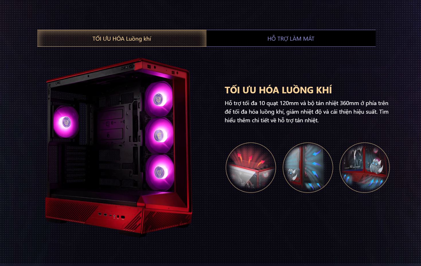 • - Nâng cấp bố cục luồng khí: Model này hỗ trợ tối đa 10 quạt và bộ tản nhiệt 360 mm ở phía trên và bên hông. Khoang dưới cũng được bao quanh bởi các lỗ thông hơi giúp tăng cường khả năng tản nhiệt, mang lại hiệu suất tối ưu.