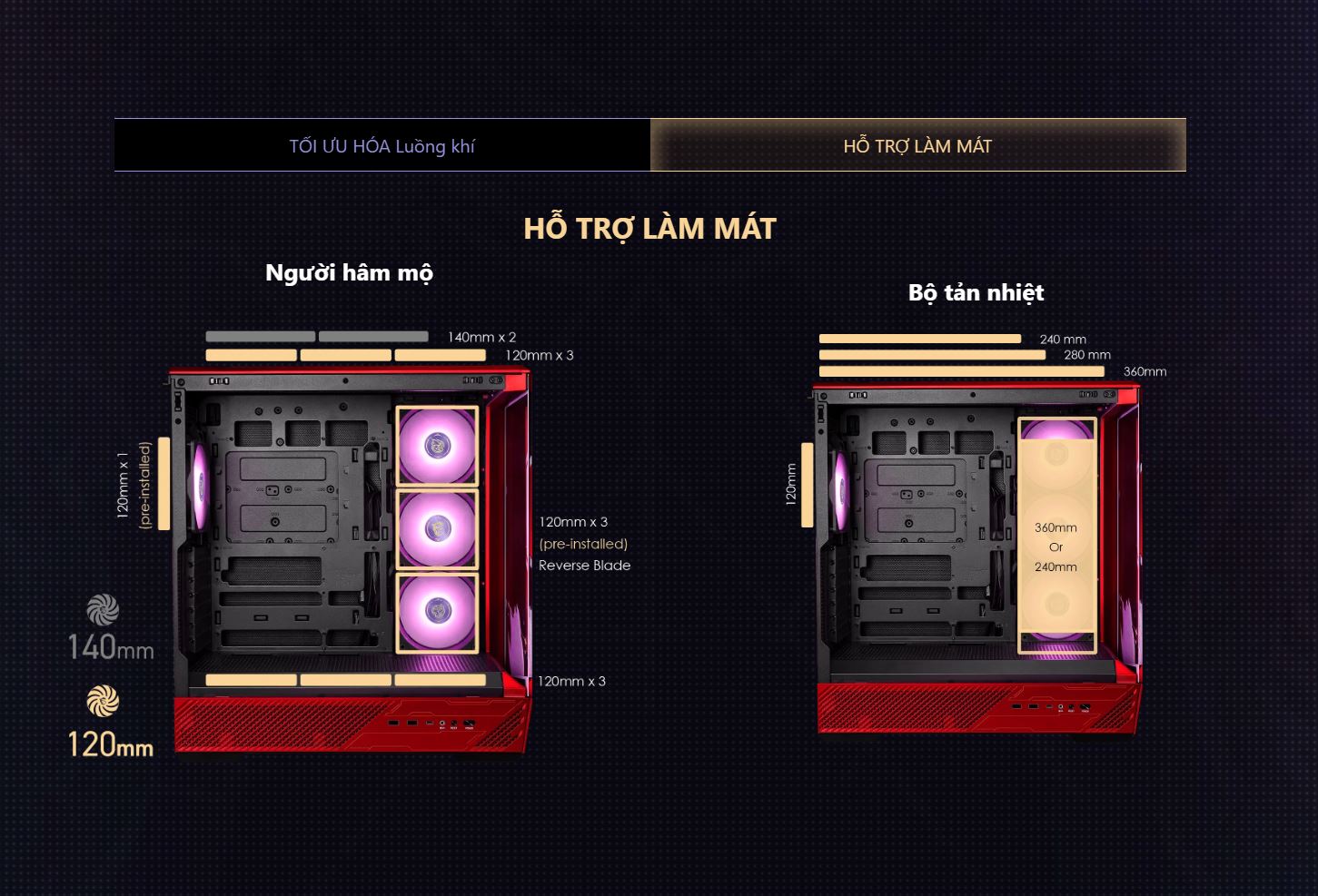 • - Lắp sẵn quạt đảo chiều: Quạt đảo chiều được lắp sẵn ở bên cạnh cho phép phô diễn vẻ đẹp của quạt ARGB mà không bị cản trở.