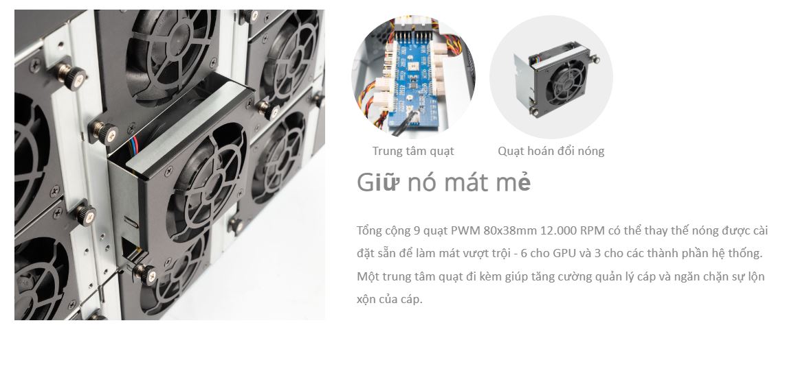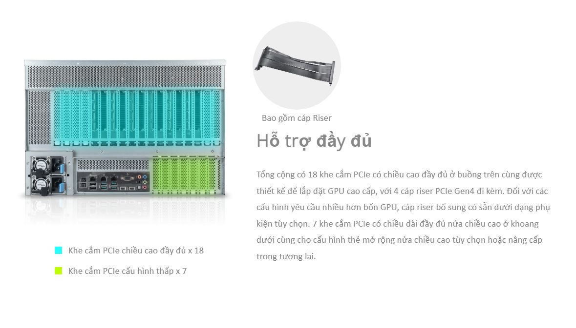 - • Buồng trên 4.5U cho GPU (chiều dài tối đa lên đến 360mm)