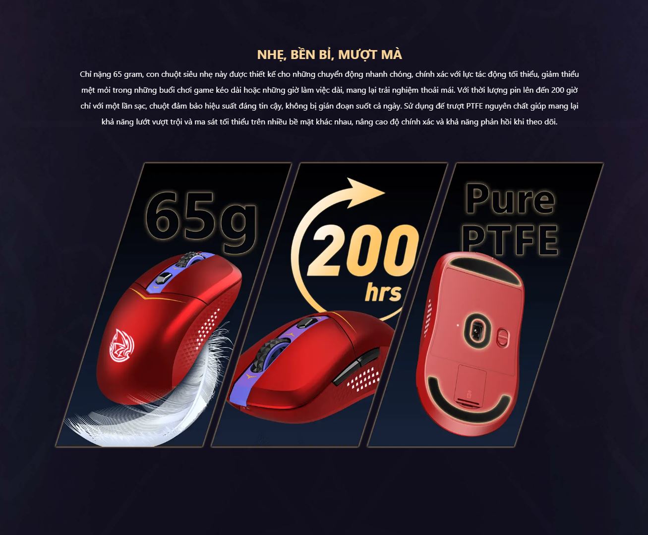 • - SỰ THOẢI MÁI SIÊU NHẸ - Chỉ nặng 65g, VERSA WIRELESS MLG EDITION hoàn hảo cho các trò chơi tốc độ cao với chuyển động dễ dàng, tăng cường cả sự nhanh nhẹn và độ chính xác.