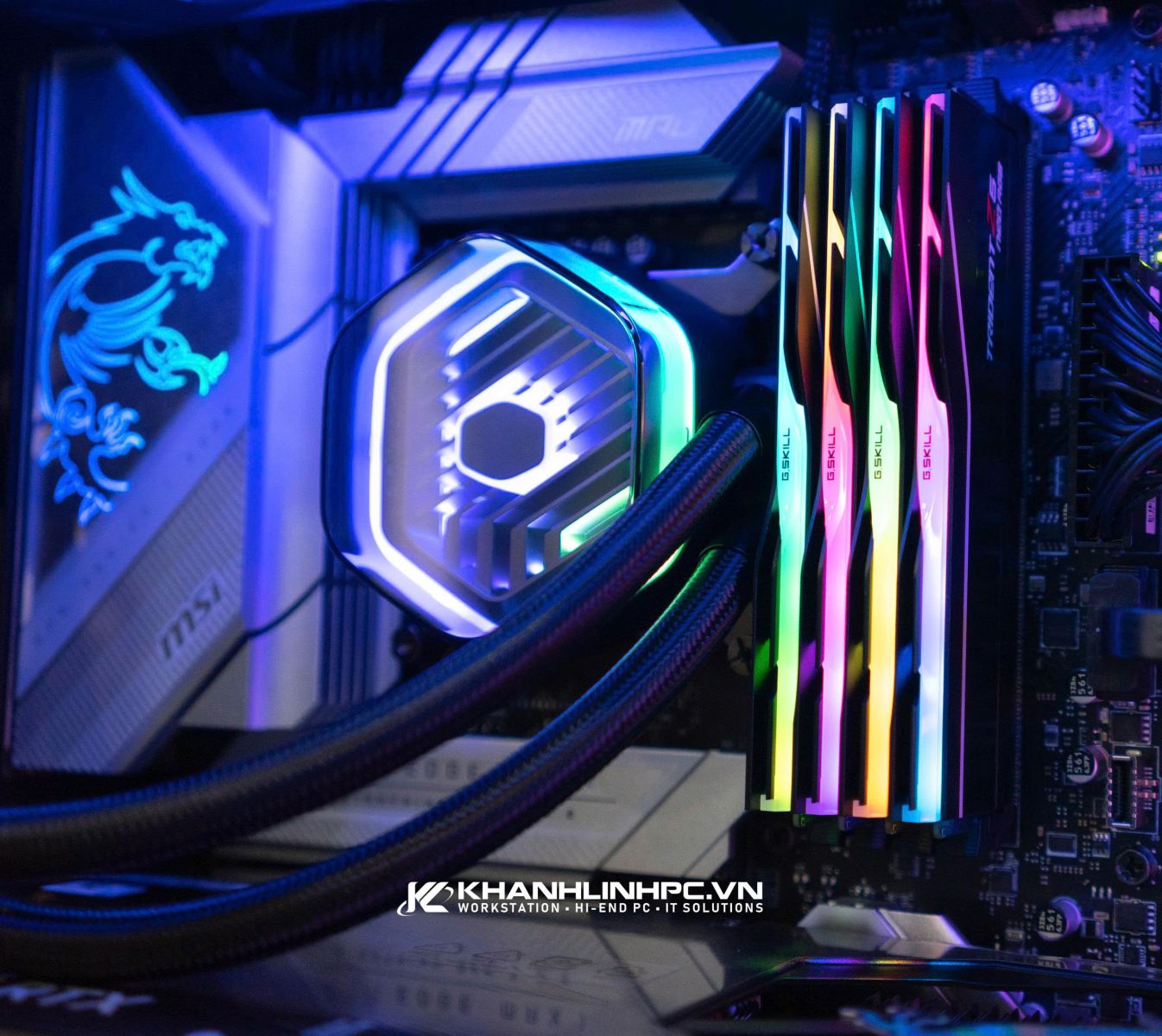 Trang bị G.SKILL Trident Z5 Neo RGB 128GB (4x32GB) 6000MHz giúp hệ thống chạy đa nhiệm mượt mà ngay cả khi mở hàng trăm layer Photoshop, project After Effects nặng hay mô phỏng 3D phức tạp. Kèm theo đó là SSD MSI Spatium M450 1TB PCIe 4.0, tốc độ cao cho phép mở phần mềm, game và file dung lượng cực lớn trong tích tắc.
