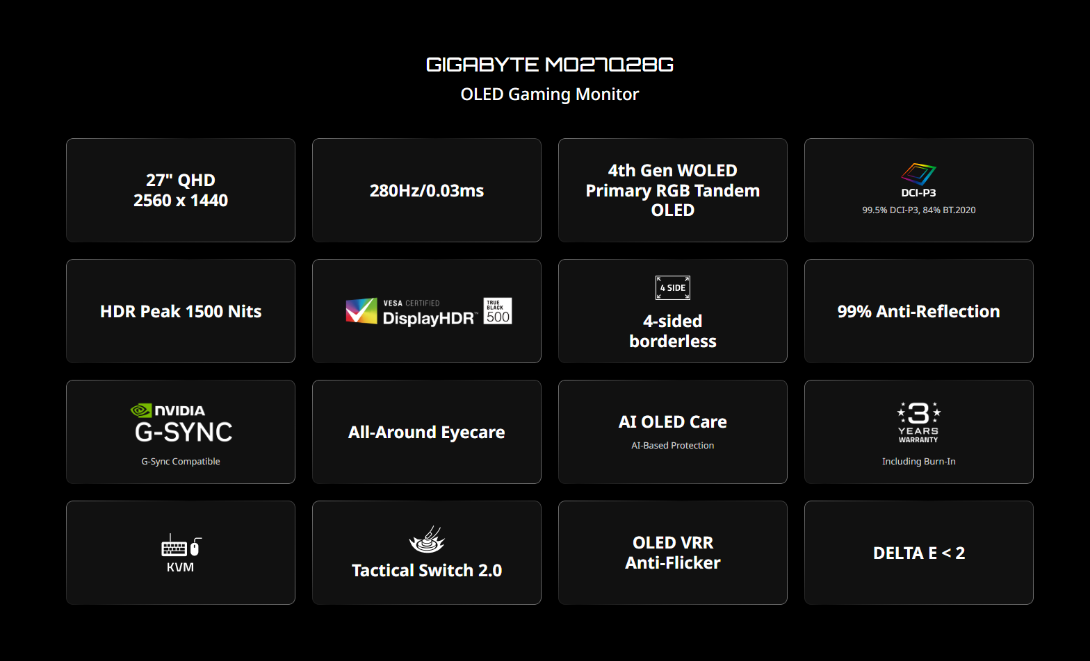 Màn hình Gaming Gigabyte MO27Q28G (27 inch / 2K / WOLED / 280Hz/0.03ms/Có loa)