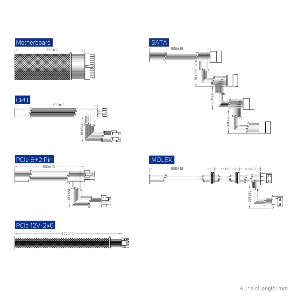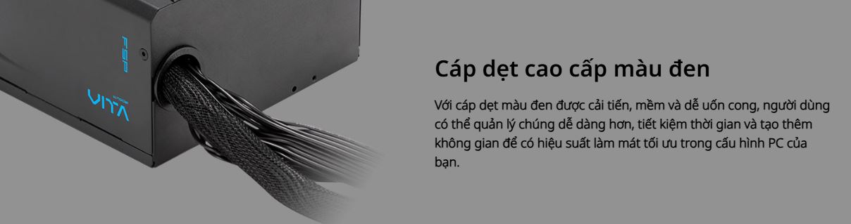 FSP VITA 850BD sử dụng thiết kế dây liền non-modular, phù hợp với các hệ thống phổ thông và dễ dàng lắp ráp. Dây có độ dài tiêu chuẩn, sắp xếp hợp lý để người dùng có thể đi dây gọn gàng trong vỏ case ATX hoặc mid-tower.