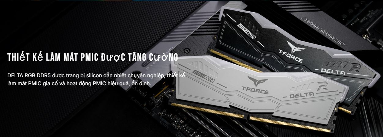 Bộ nhớ DELTA RGB DDR5 được trang bị PMIC, giảm thiểu nhiễu và đảm bảo phân phối nguồn điện ổn định, hiệu quả trên tất cả các thành phần để cung cấp nguồn điện nhanh chóng và đáng tin cậy.
