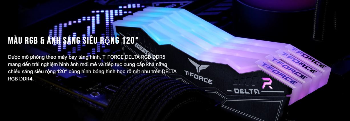 T-FORCE DELTA RGB DDR5 được trang bị bộ điều khiển IC RGB thông minh tương thích với các phần mềm hiệu ứng ánh sáng như ASUS Aura Sync, GIGABYTE RGB Fusion 2.0, MSI Mystic Light Sync, ASROCK-Polychrome Sync và BIOSTAR Advanced VIVID LEDDJđể tạo hiệu ứng ánh sáng và đồng bộ hóa. Với RGB DDR5, game thủ có thể thiết kế hiệu ứng ánh sáng của riêng mình và tạo ra một hệ thống RGB cực kỳ ấn tượng.