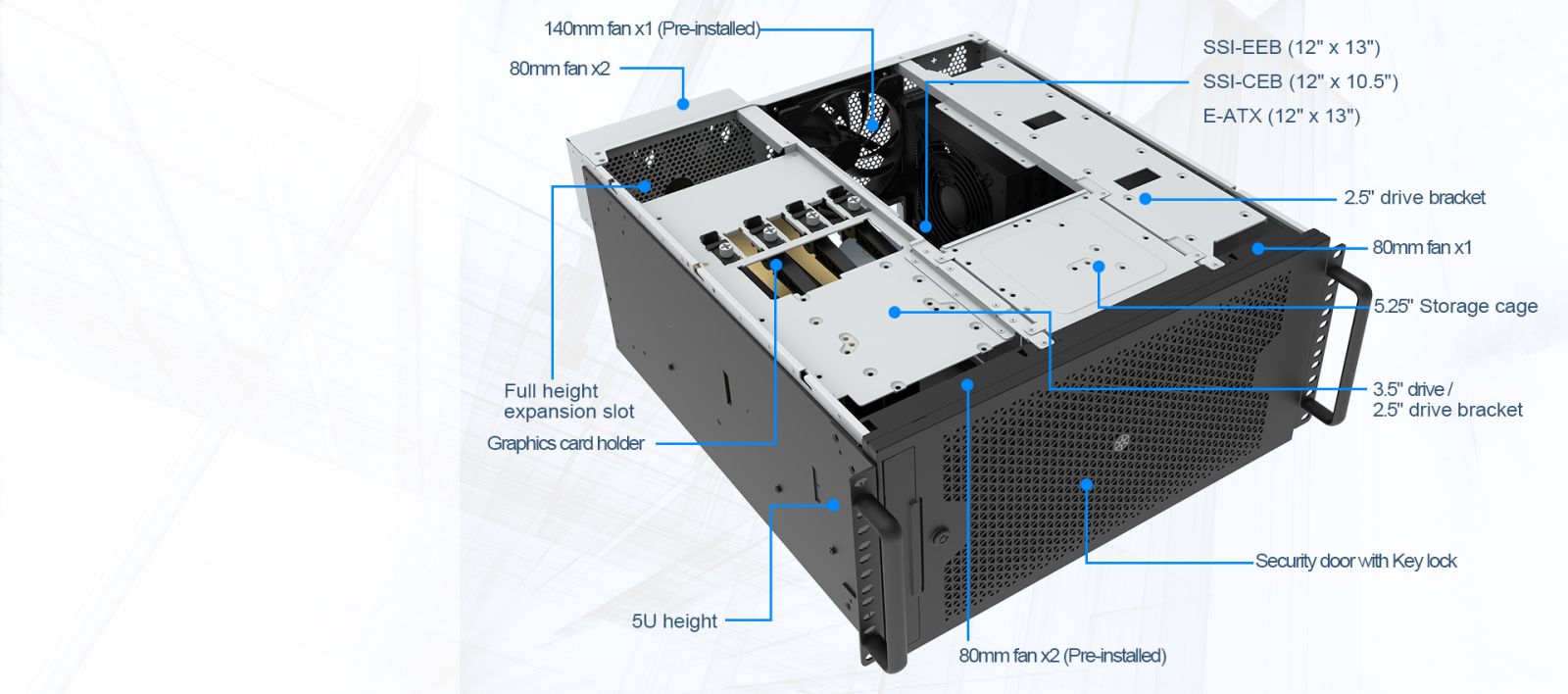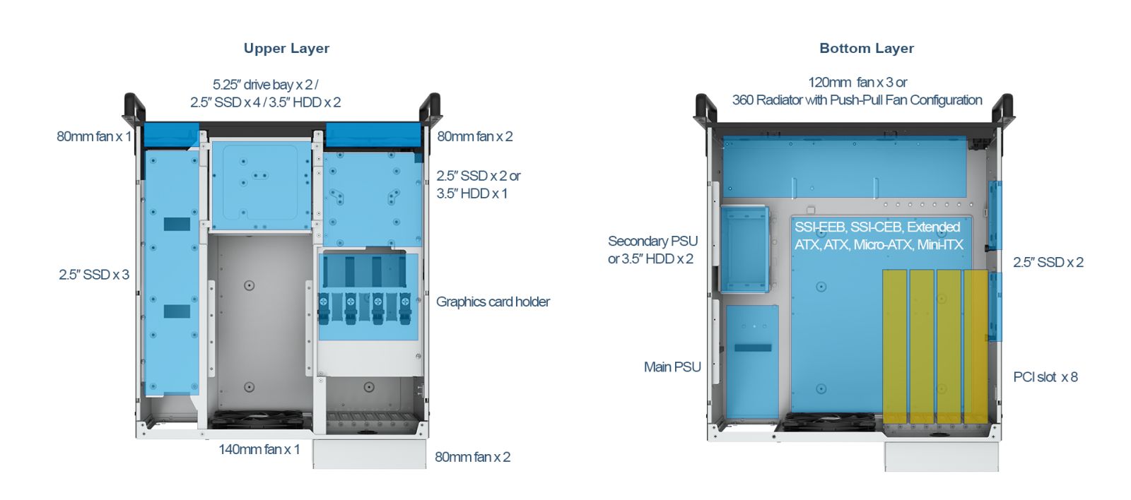 • - Mainboard hỗ trợ: SSI-EEB, SSI-CEB, Extended ATX, ATX, Micro-ATX, Mini-ITX