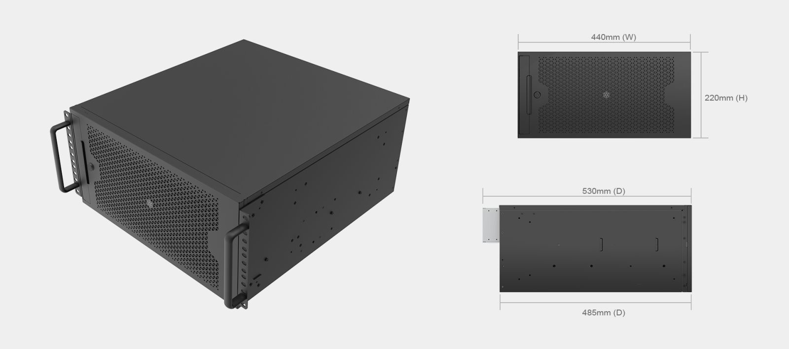 • Excl. rear fan cage: 440mm (W) x 220mm (H) x 485mm (D), 46.95 liters