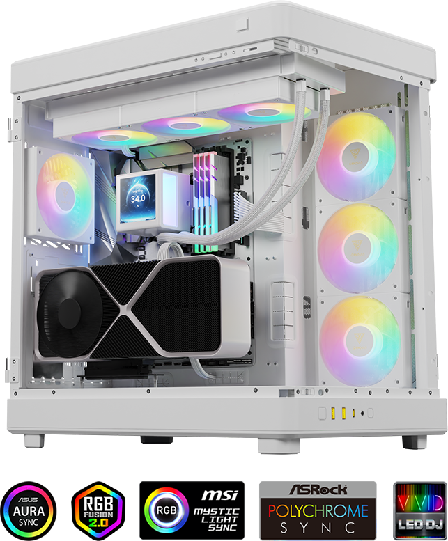 Hệ thống ba quạt 120mm giúp tối ưu lưu lượng khí lên đến 81.81 CFM với áp suất tĩnh mạnh mẽ, đảm bảo làm mát nhanh chóng. Vòng bi thủy lực giảm tiếng ồn, tăng tuổi thọ quạt. Tích hợp RGB đồng bộ màu sắc với hệ thống. Điều chỉnh tốc độ quạt qua PWM, tối ưu làm mát và độ yên tĩnh.
